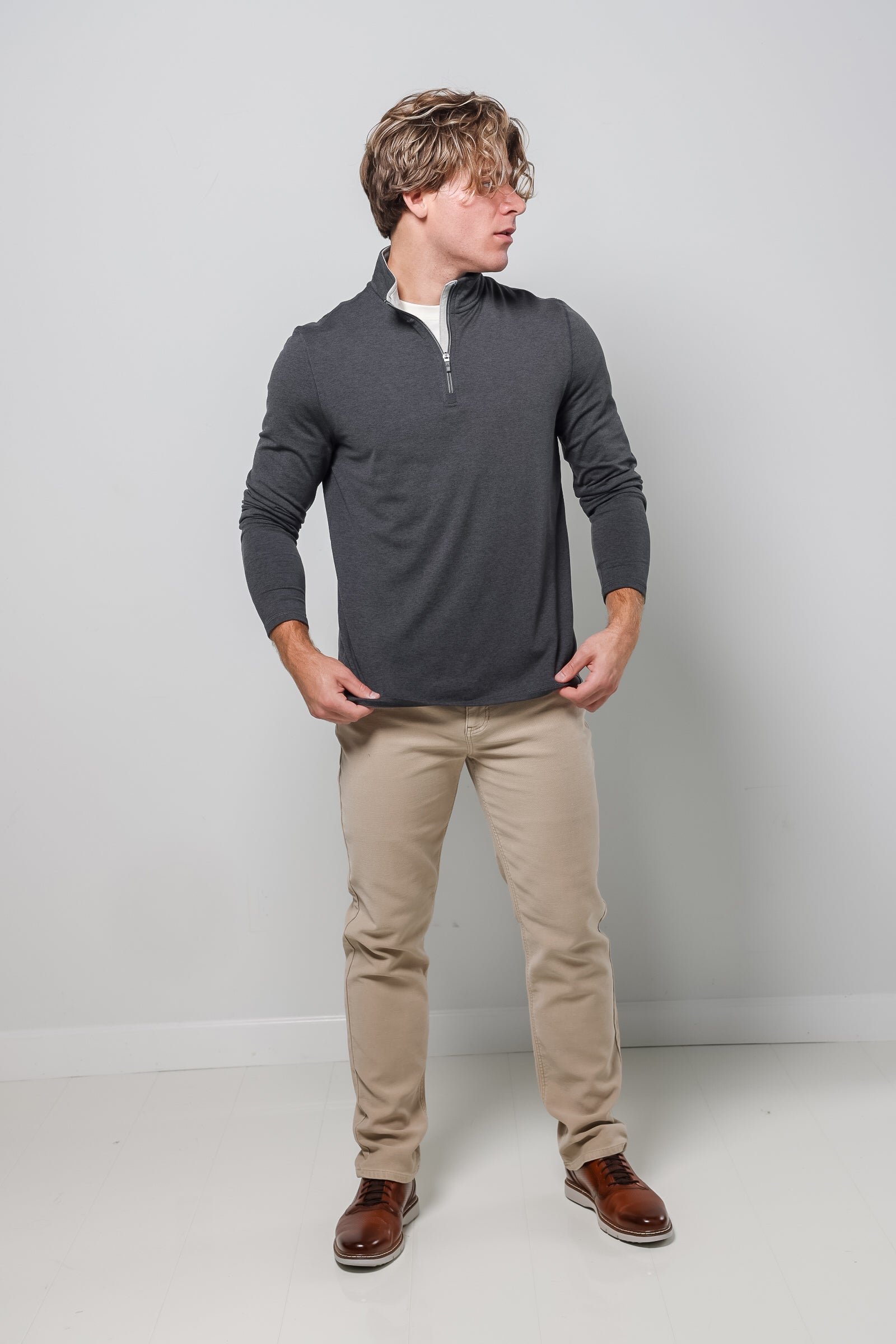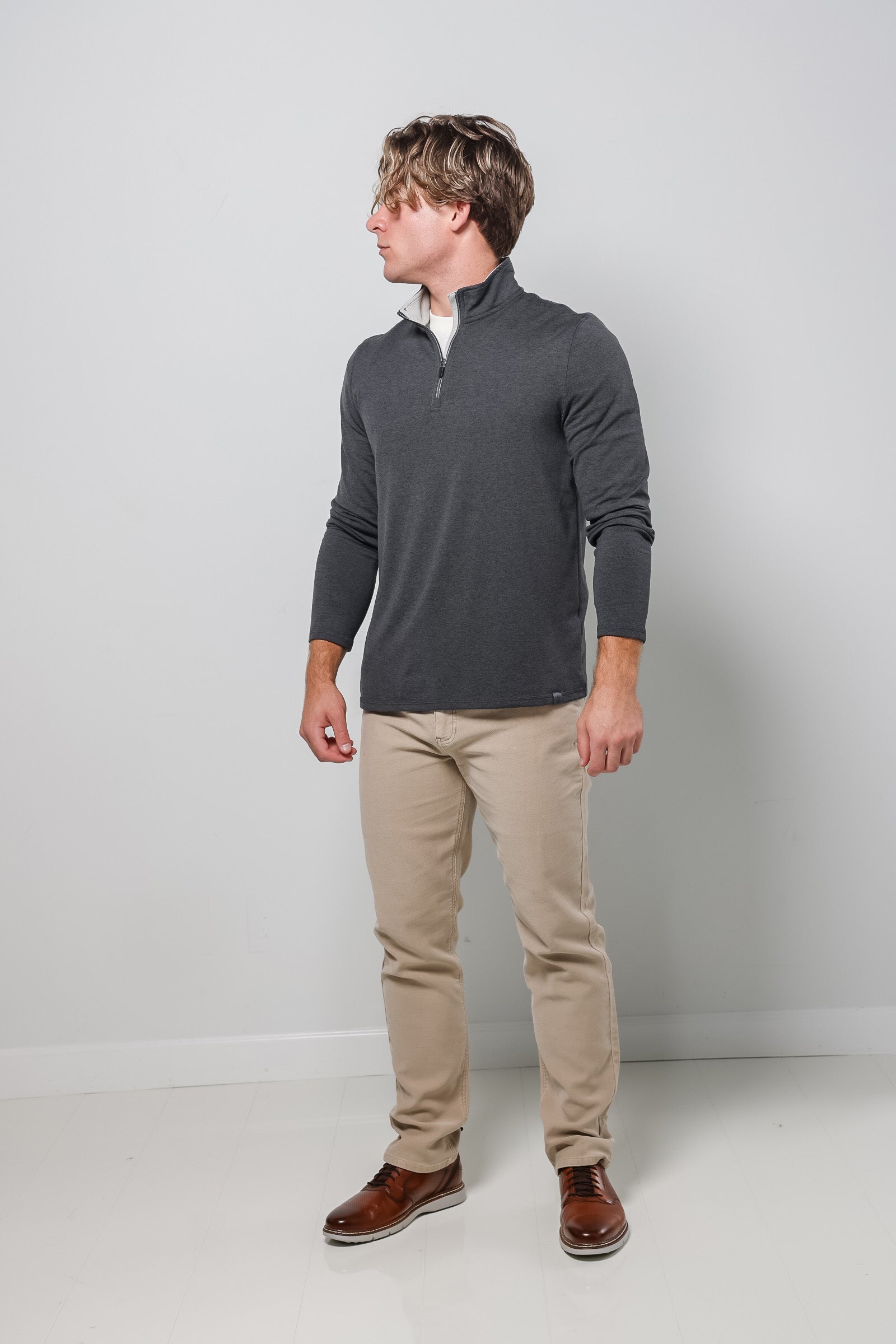 Clean, sharp, and versatile — this charcoal quarter-zip is a must-have for any guy on the go. Its sleek design and soft, comfortable fit make it ideal for layering or wearing solo. Pair it with chinos for a night out or throw it on with your favorite denim for an easy, everyday look.