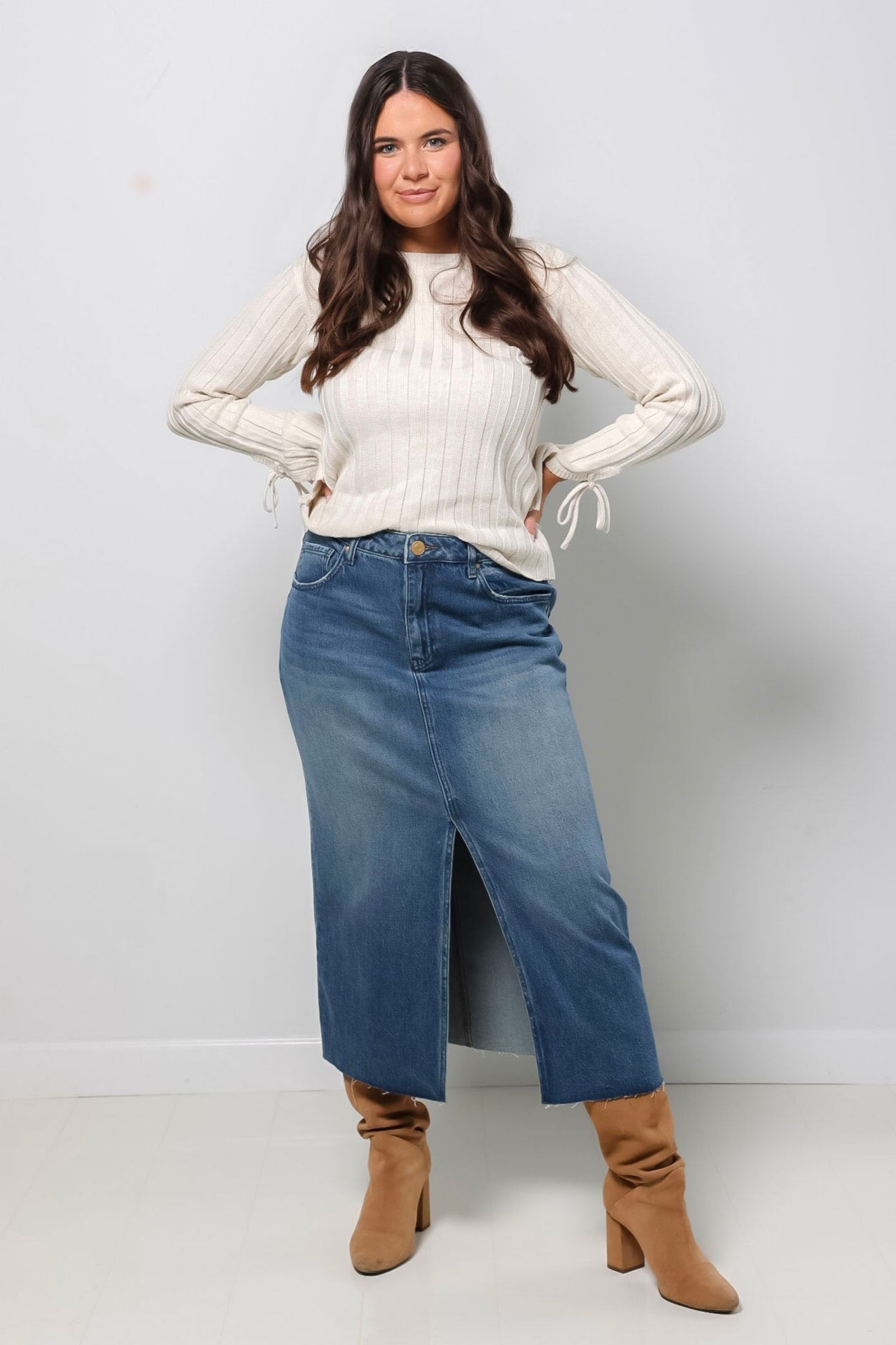 The Ira Sweater is your new go-to for effortless polish. This soft ribbed knit hugs just right, while tie details at the sleeves add a feminine twist. Lightweight yet cozy, it's perfect solo or layered up—day to night, season to season.