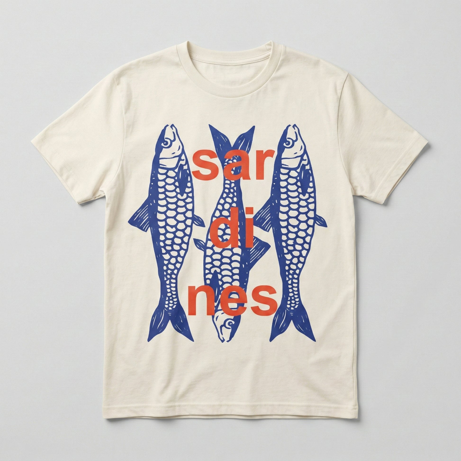 Dive into coastal vibes with this Sardines T-Shirt, where salty air meets seaside flair. Perfect for beach lovers and ocean enthusiasts who embrace their quirky side, this tee delivers authentic coastal realness with a playful twist. Whether you're channeling your inner seafarer or just vibing with maritime charm, this shirt captures that carefree seaside spirit. Comfortable, casual, and unapologetically fun—your new wardrobe essential for anyone who celebrates the ocean's character.